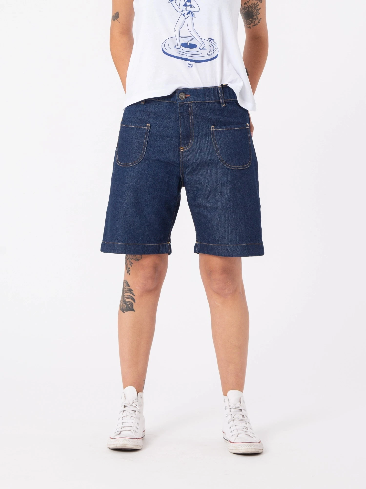 Te presentamos a Mazzy, unas bermudas vaqueras de mujer perfectas para cualquier ocasión. Además, estos pantalones cortos de mujer son muy cómodos ya que tienen la cintura elástica. Sus bolsillos en horizontal le dan un toque vintage muy especial. Están elaborados con TENCEL™ Lyocell fibers para conseguir una prenda muy fresca los días más calurosos.