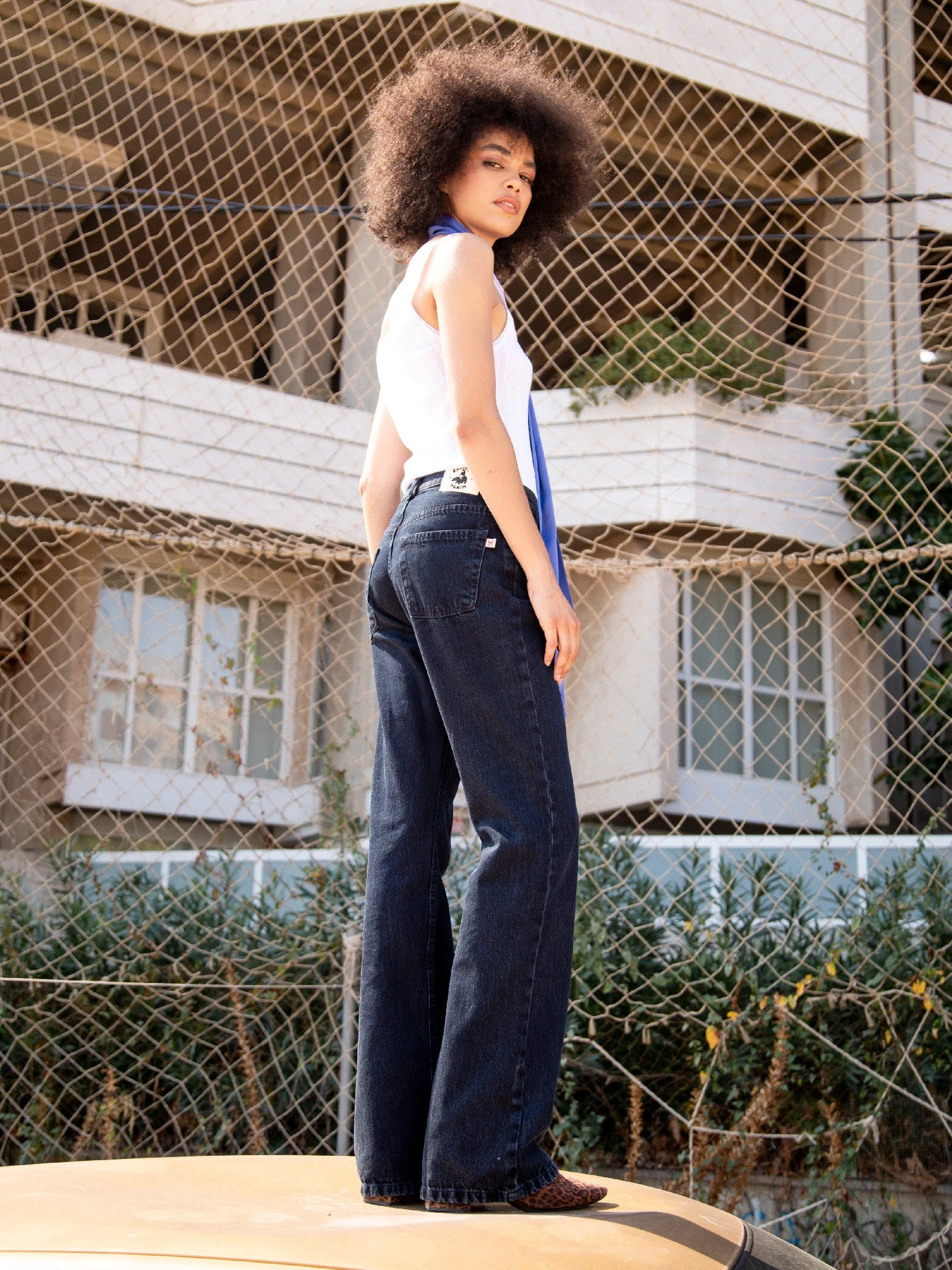 Odetta Vintage Mid Blue son unos jeans low loose de tiro alto y cintura relajada. Con un tono azul medio y fit bootcut, este modelo combina comodidad y un estilo retro renovado. Están diseñados y fabricados íntegramente en España bajo la producción local. Edición limitada.