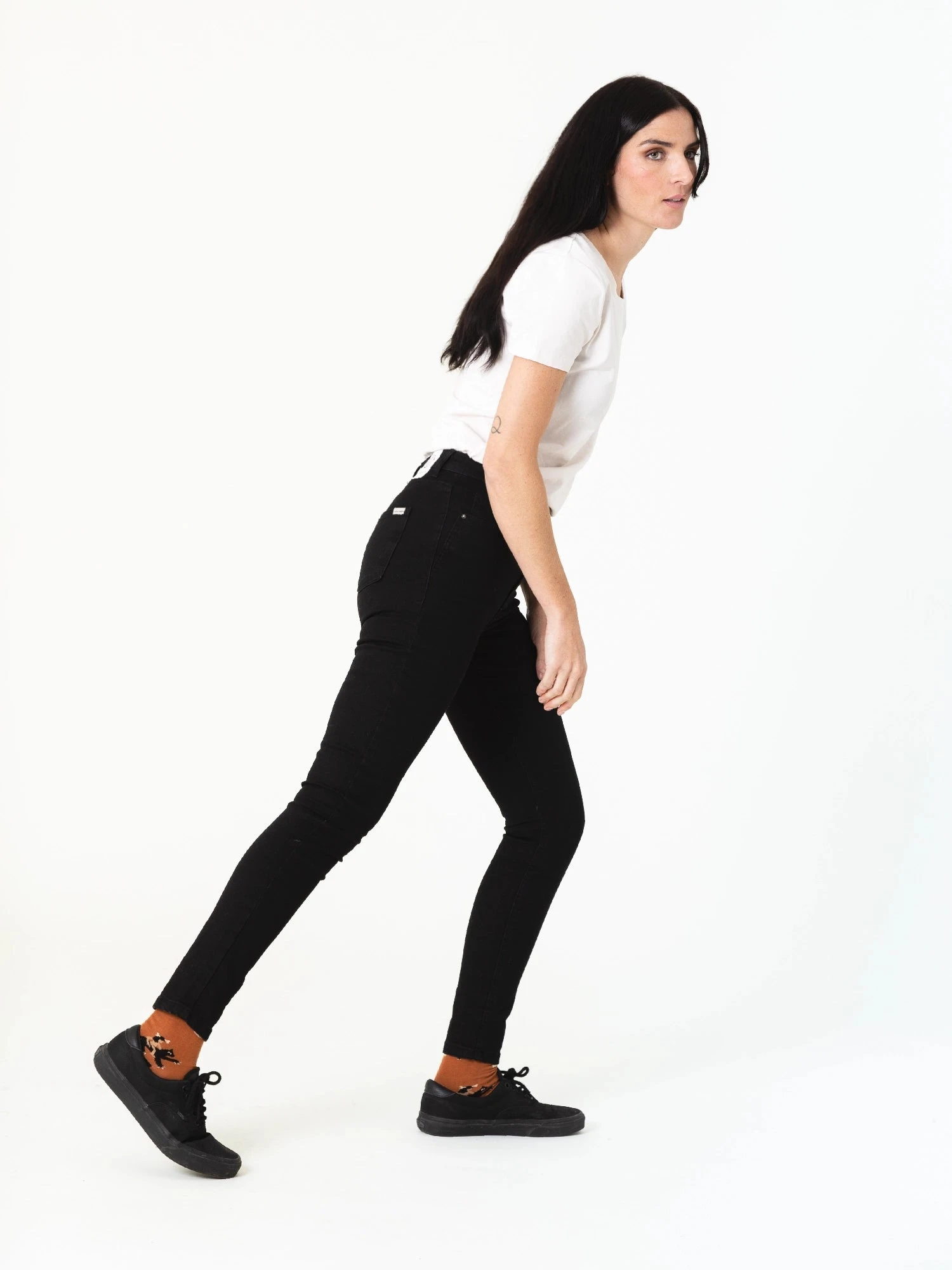 Los Denver Old Black son el básico que nunca falla. Skinny, de tiro alto y elásticos, se adaptan perfectamente a la silueta, ofreciendo un ajuste cómodo y favorecedor.